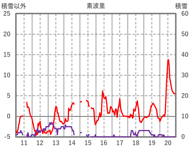 | 日 | 時 | 気温 | 降水 | 風向/風速 | 日照 | 積雪 | 降雪 |