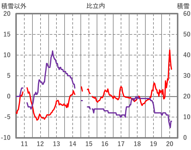 | 日 | 時 | 気温 | 降水 | 風向/風速 | 日照 | 積雪 | 降雪 |