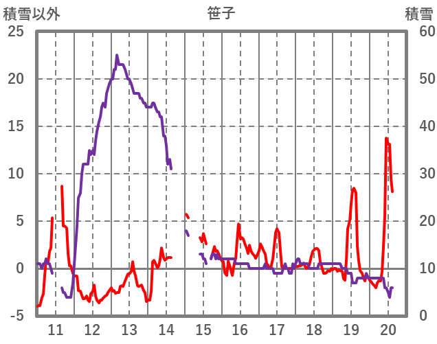 | 日 | 時 | 気温 | 降水 | 風向/風速 | 日照 | 積雪 | 降雪 |