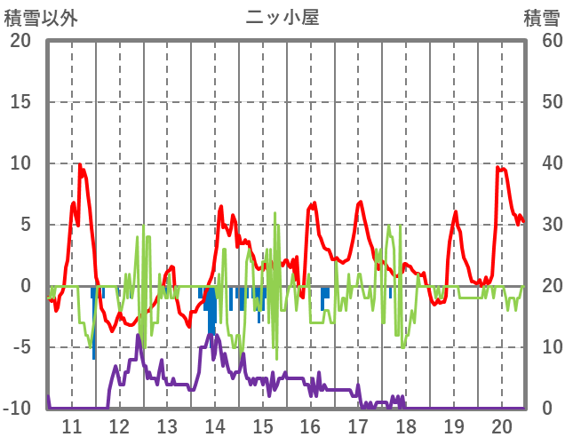 | 日 | 時 | 気温 | 降水 | 風向/風速 | 日照 | 積雪 | 降雪 |