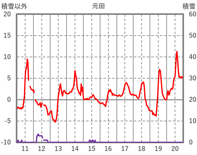 | 日 | 時 | 気温 | 降水 | 風向/風速 | 日照 | 積雪 | 降雪 |