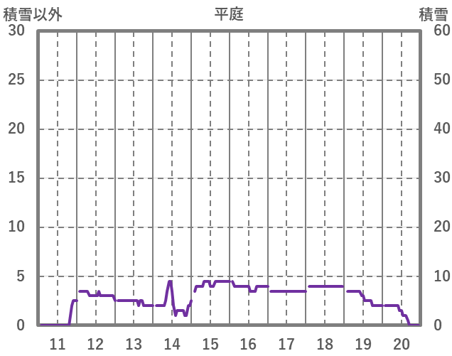 | 日 | 時 | 気温 | 降水 | 風向/風速 | 日照 | 積雪 | 降雪 |