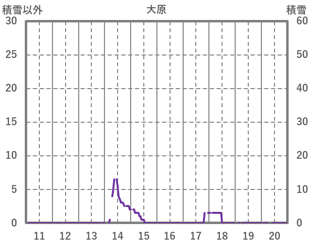 | 日 | 時 | 気温 | 降水 | 風向/風速 | 日照 | 積雪 | 降雪 |