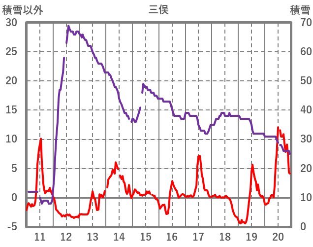 | 日 | 時 | 気温 | 降水 | 風向/風速 | 日照 | 積雪 | 降雪 |