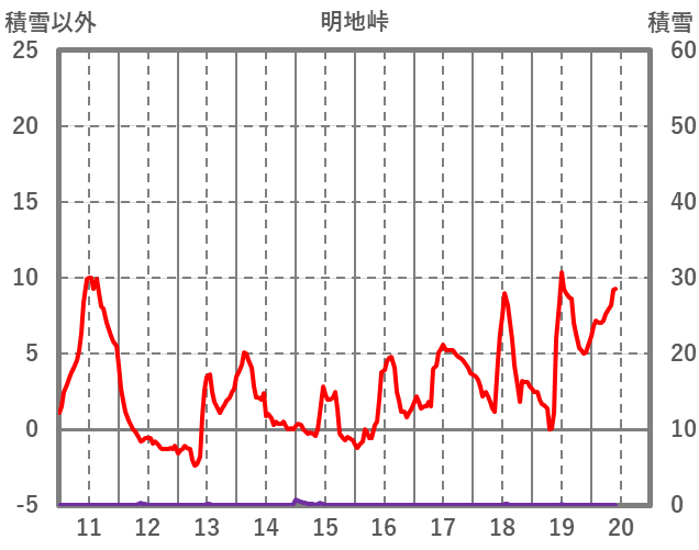 | 日 | 時 | 気温 | 降水 | 風向/風速 | 日照 | 積雪 | 降雪 |