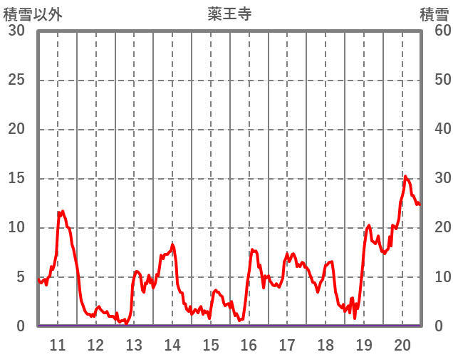 | 日 | 時 | 気温 | 降水 | 風向/風速 | 日照 | 積雪 | 降雪 |