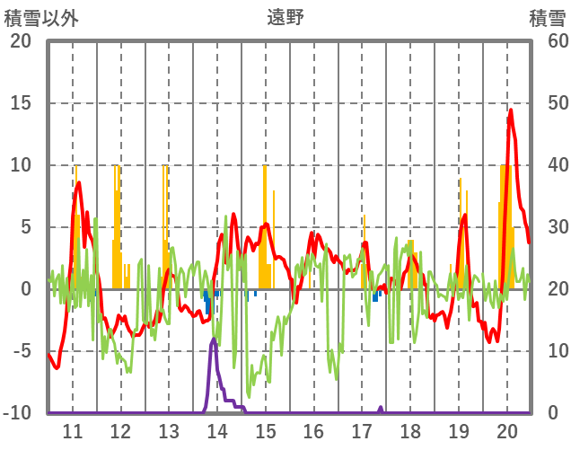 | 日 | 時 | 気温 | 降水 | 風向/風速 | 日照 | 積雪 | 降雪 |