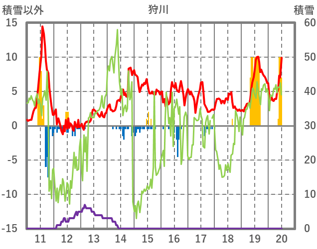 | 日 | 時 | 気温 | 降水 | 風向/風速 | 日照 | 積雪 | 降雪 |