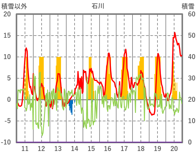 | 日 | 時 | 気温 | 降水 | 風向/風速 | 日照 | 積雪 | 降雪 |