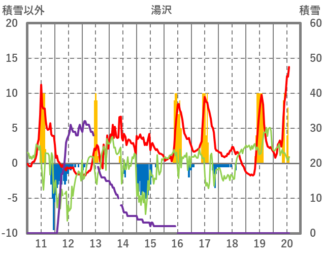 | 日 | 時 | 気温 | 降水 | 風向/風速 | 日照 | 積雪 | 降雪 |
