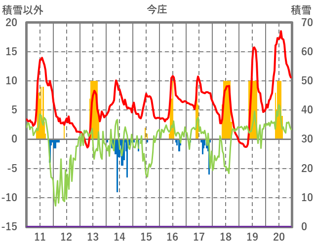 | 日 | 時 | 気温 | 降水 | 風向/風速 | 日照 | 積雪 | 降雪 |