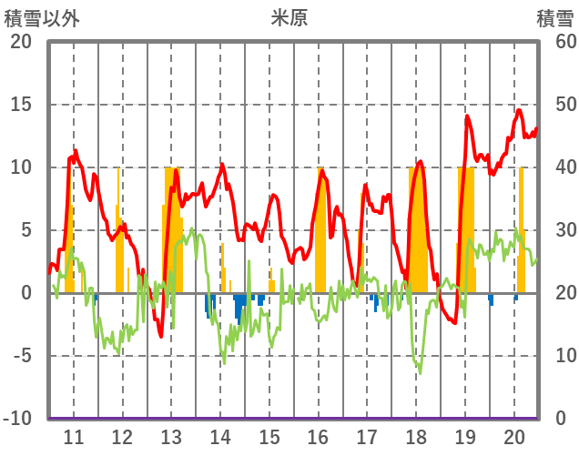 | 日 | 時 | 気温 | 降水 | 風向/風速 | 日照 | 積雪 | 降雪 |