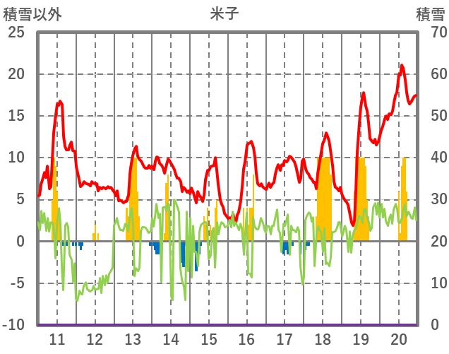 | 日 | 時 | 気温 | 降水 | 風向/風速 | 日照 | 積雪 | 降雪 |