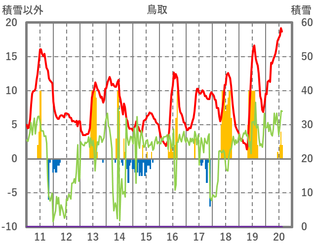 | 日 | 時 | 気温 | 降水 | 風向/風速 | 日照 | 積雪 | 降雪 |