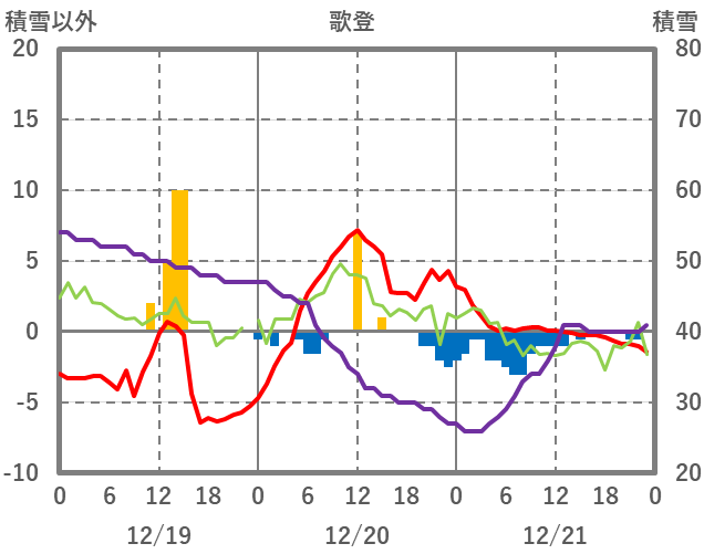 | 日 | 時 | 気温 | 降水 | 風向/風速 | 日照 | 積雪 | 降雪 |
