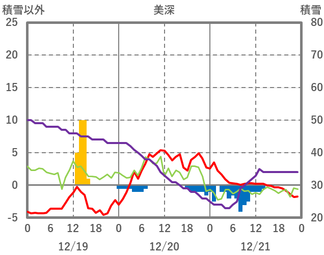 | 日 | 時 | 気温 | 降水 | 風向/風速 | 日照 | 積雪 | 降雪 |