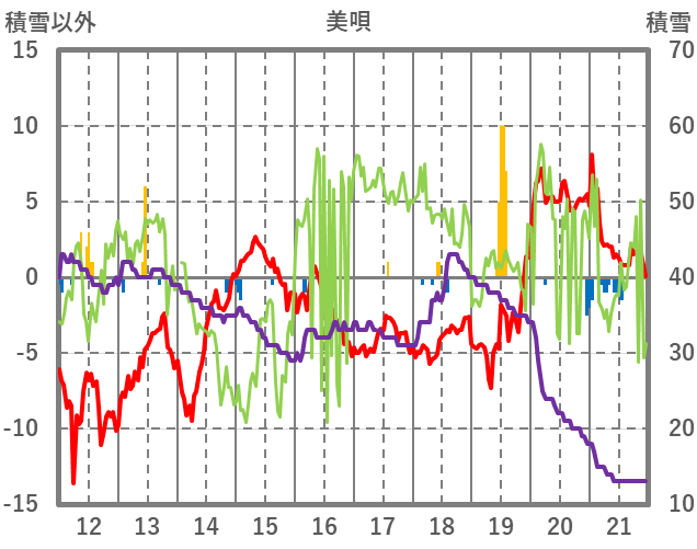 | 日 | 時 | 気温 | 降水 | 風向/風速 | 日照 | 積雪 | 降雪 |