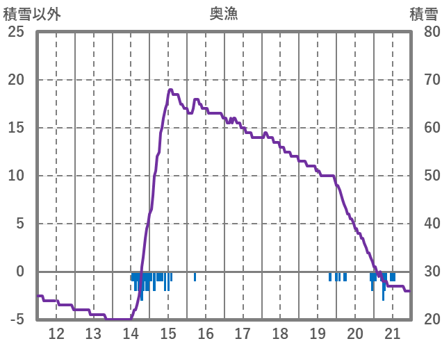 | 日 | 時 | 気温 | 降水 | 風向/風速 | 日照 | 積雪 | 降雪 |