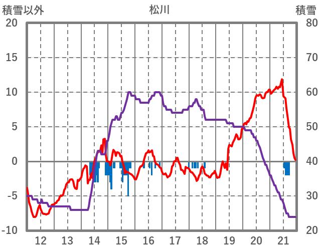 | 日 | 時 | 気温 | 降水 | 風向/風速 | 日照 | 積雪 | 降雪 |