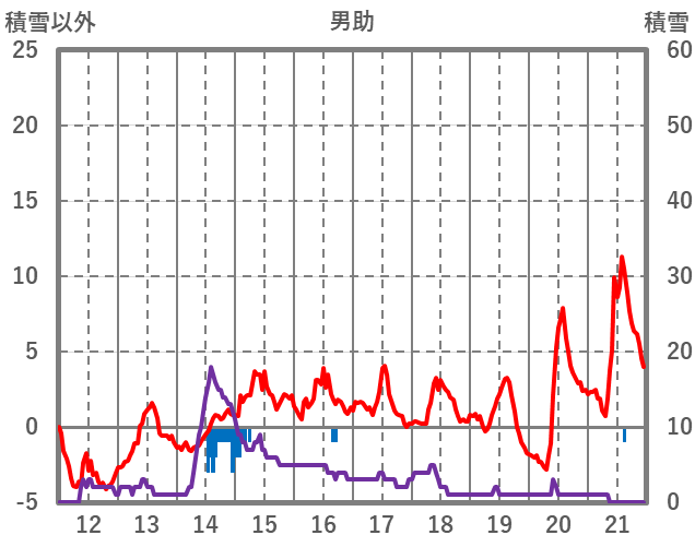 | 日 | 時 | 気温 | 降水 | 風向/風速 | 日照 | 積雪 | 降雪 |