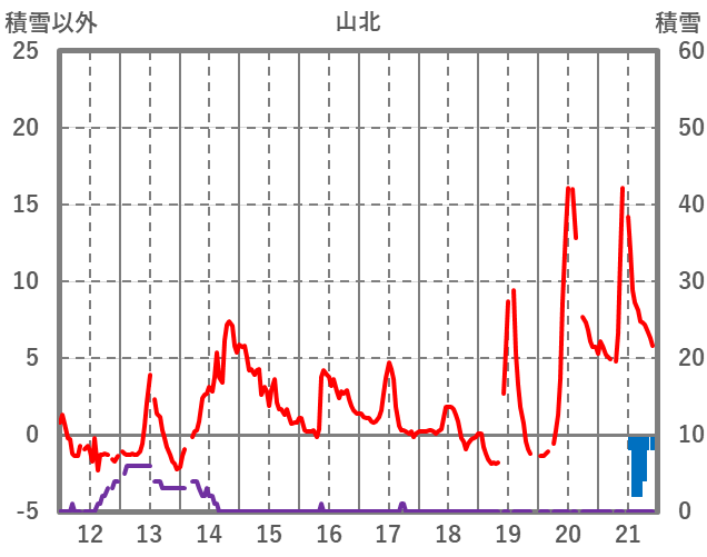 | 日 | 時 | 気温 | 降水 | 風向/風速 | 日照 | 積雪 | 降雪 |