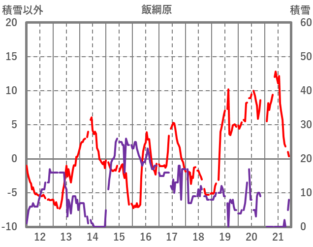 | 日 | 時 | 気温 | 降水 | 風向/風速 | 日照 | 積雪 | 降雪 |
