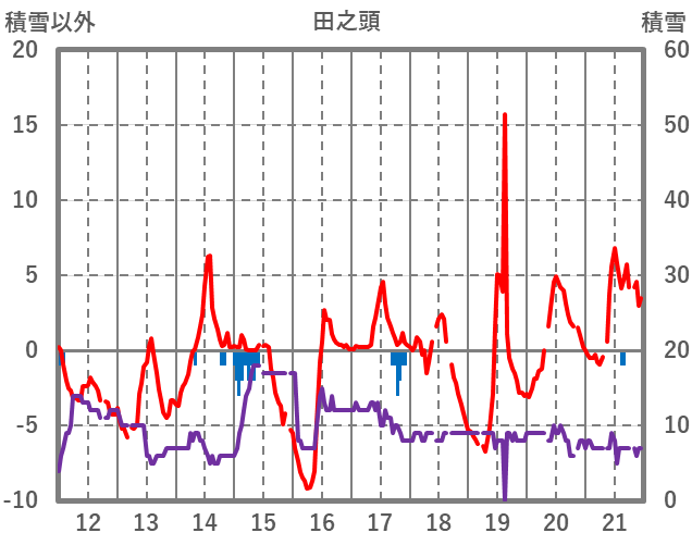 | 日 | 時 | 気温 | 降水 | 風向/風速 | 日照 | 積雪 | 降雪 |