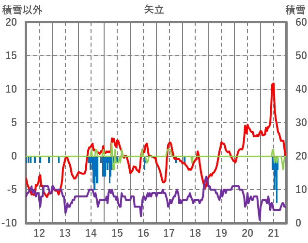 | 日 | 時 | 気温 | 降水 | 風向/風速 | 日照 | 積雪 | 降雪 |
