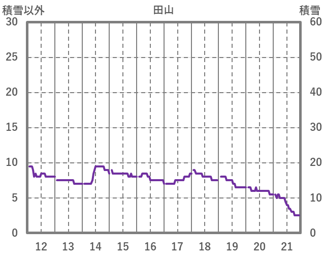 | 日 | 時 | 気温 | 降水 | 風向/風速 | 日照 | 積雪 | 降雪 |