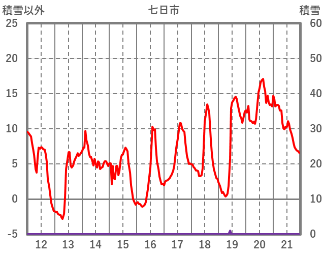 | 日 | 時 | 気温 | 降水 | 風向/風速 | 日照 | 積雪 | 降雪 |