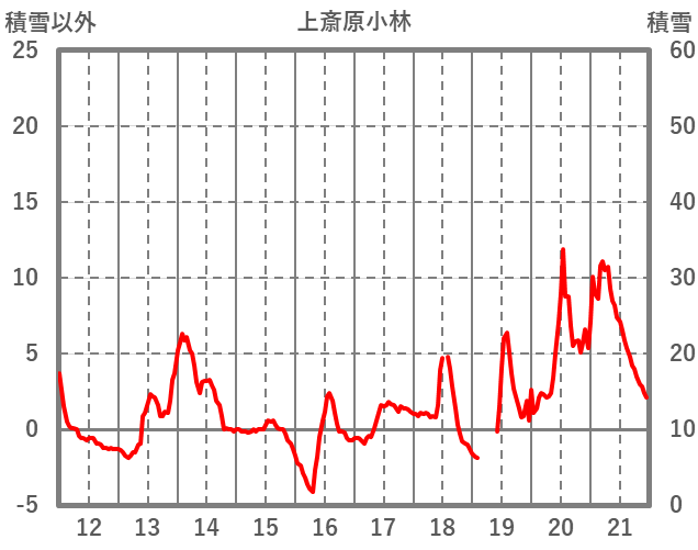 | 日 | 時 | 気温 | 降水 | 風向/風速 | 日照 | 積雪 | 降雪 |