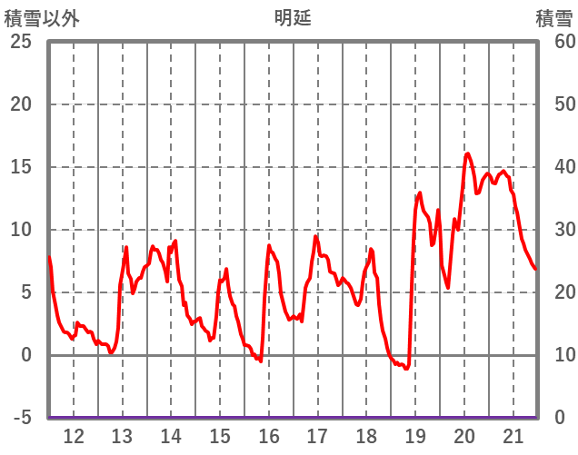 | 日 | 時 | 気温 | 降水 | 風向/風速 | 日照 | 積雪 | 降雪 |