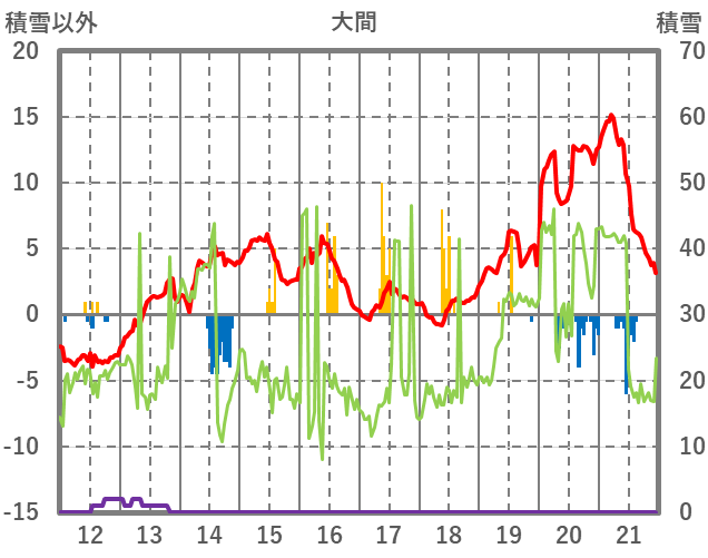| 日 | 時 | 気温 | 降水 | 風向/風速 | 日照 | 積雪 | 降雪 |