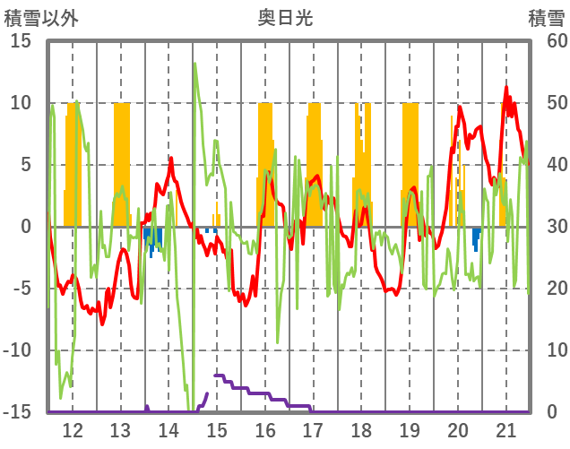 | 日 | 時 | 気温 | 降水 | 風向/風速 | 日照 | 積雪 | 降雪 |