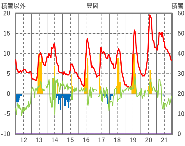 | 日 | 時 | 気温 | 降水 | 風向/風速 | 日照 | 積雪 | 降雪 |