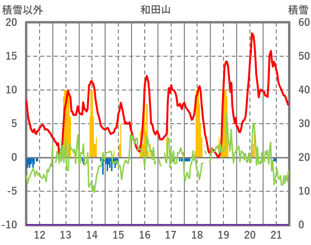 | 日 | 時 | 気温 | 降水 | 風向/風速 | 日照 | 積雪 | 降雪 |