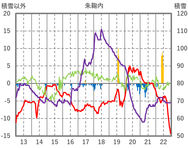 | 日 | 時 | 気温 | 降水 | 風向/風速 | 日照 | 積雪 | 降雪 |