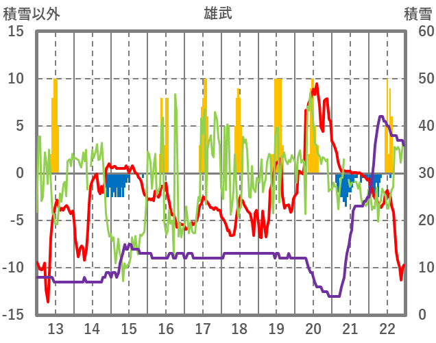 | 日 | 時 | 気温 | 降水 | 風向/風速 | 日照 | 積雪 | 降雪 |