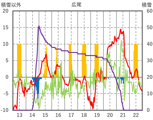 | 日 | 時 | 気温 | 降水 | 風向/風速 | 日照 | 積雪 | 降雪 |