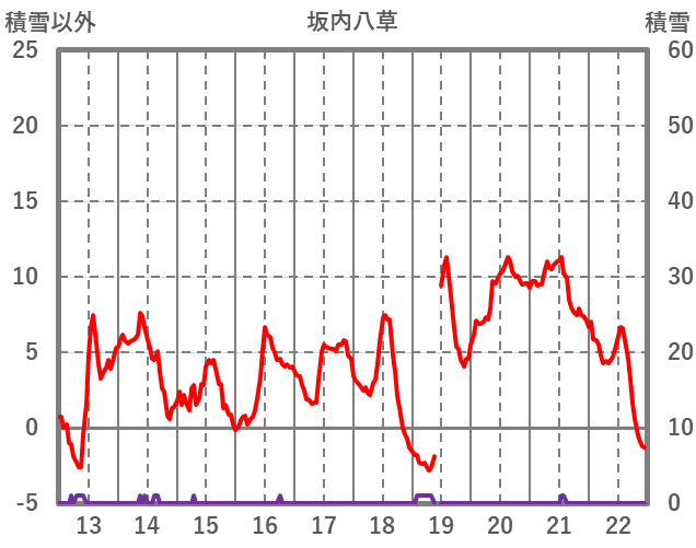 | 日 | 時 | 気温 | 降水 | 風向/風速 | 日照 | 積雪 | 降雪 |
