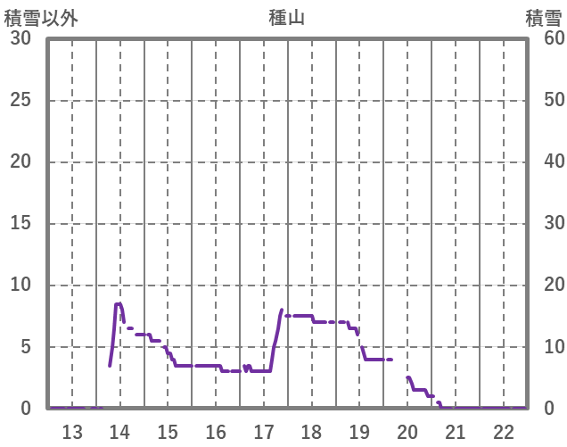| 日 | 時 | 気温 | 降水 | 風向/風速 | 日照 | 積雪 | 降雪 |