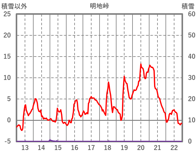 | 日 | 時 | 気温 | 降水 | 風向/風速 | 日照 | 積雪 | 降雪 |
