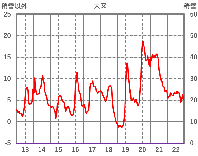 | 日 | 時 | 気温 | 降水 | 風向/風速 | 日照 | 積雪 | 降雪 |