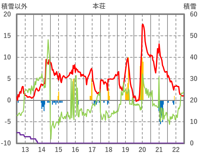 | 日 | 時 | 気温 | 降水 | 風向/風速 | 日照 | 積雪 | 降雪 |