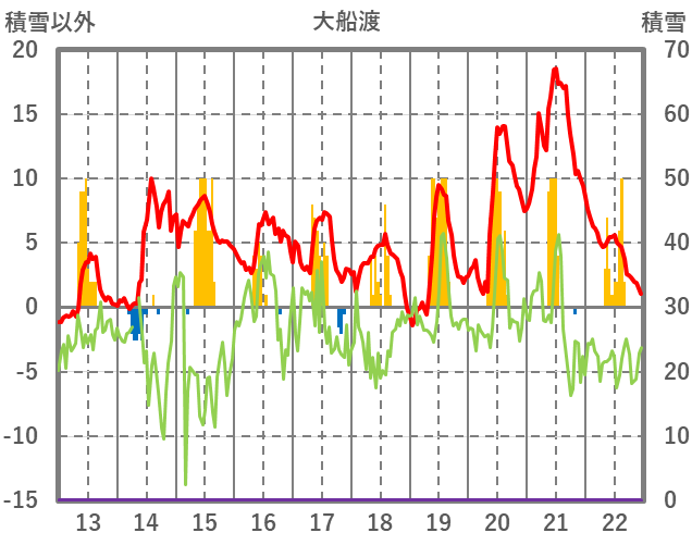 | 日 | 時 | 気温 | 降水 | 風向/風速 | 日照 | 積雪 | 降雪 |