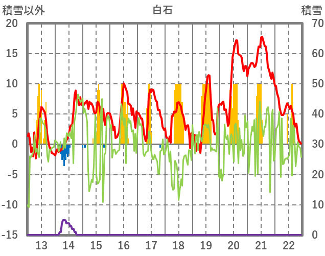 | 日 | 時 | 気温 | 降水 | 風向/風速 | 日照 | 積雪 | 降雪 |