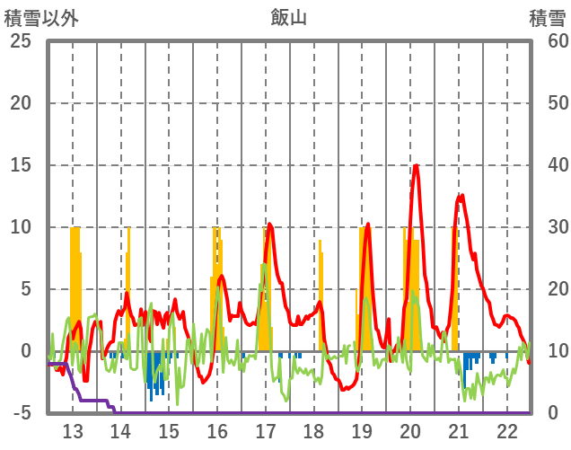 | 日 | 時 | 気温 | 降水 | 風向/風速 | 日照 | 積雪 | 降雪 |