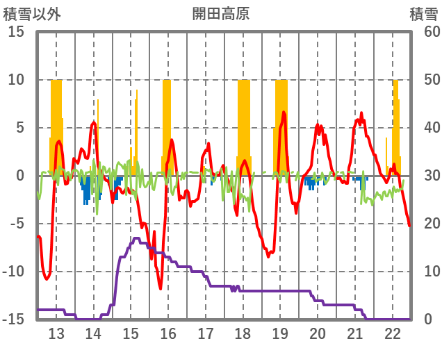 | 日 | 時 | 気温 | 降水 | 風向/風速 | 日照 | 積雪 | 降雪 |