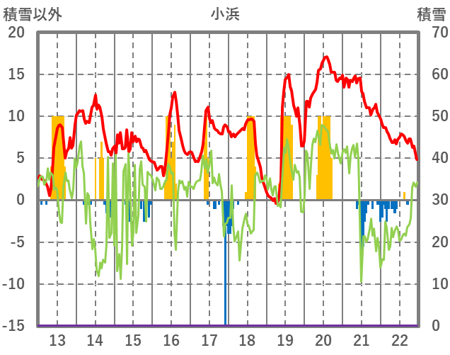 | 日 | 時 | 気温 | 降水 | 風向/風速 | 日照 | 積雪 | 降雪 |