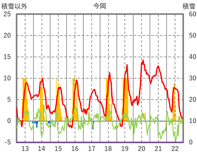 | 日 | 時 | 気温 | 降水 | 風向/風速 | 日照 | 積雪 | 降雪 |